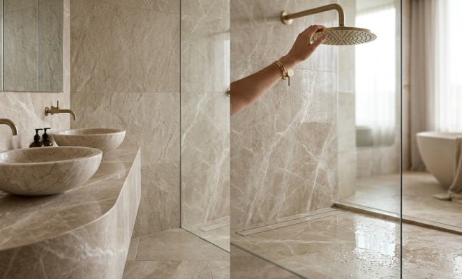 Piatra naturală în spații umede: Soluții inedite pentru o baie de lux care rezistă la infiltrații în viitor